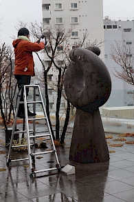 - 菊池一雄《青年》三田キャンパス屋外彫刻作品洗浄保存処置