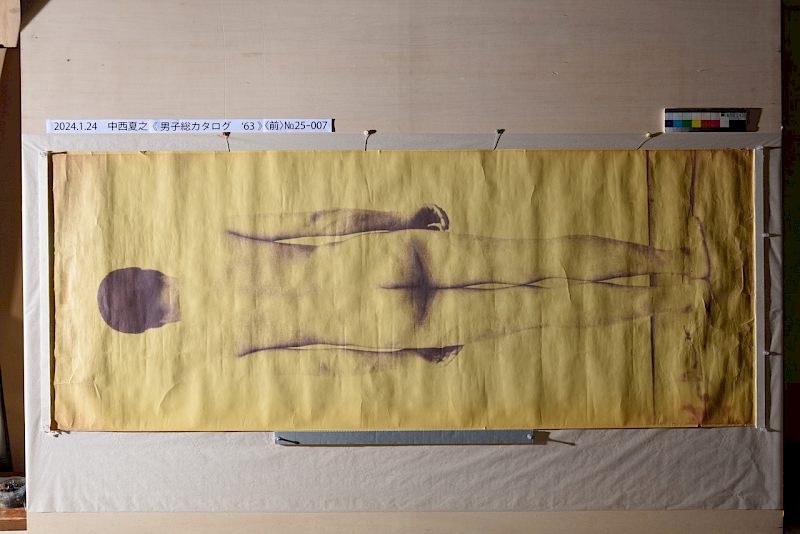 戦後の前衛芸術グループ「ハイレッド・センター」を高松次郎、赤瀬川原平とともに結成した中西夏之による作品。本作品はハイレッド・センターの「シェルター計画」で撮影された男性の背面写真を、中西が等身大のブループリントにしたものである。本作品には紙の亀裂などが見られたため、修復研究所二十一に修復を依頼した。このブループリントの長尺の作品≪男子総カタログ ʼ63≫は2013年に修復が行われている。