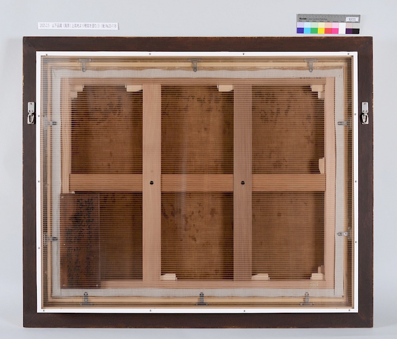 額縁:グレージング、裏蓋なし。強度はあるが、入れ子を含めて塗料の剥がれ、汚れが目立ち、作品の鑑賞を妨げる要因となっている。
