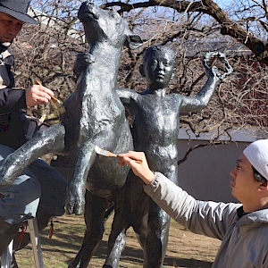 - 朝倉文夫《平和来》三田キャンパス屋外彫刻作品洗浄保存処置