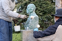 - 《松永安左エ門胸像》志木高等学校屋外彫刻作品洗浄保存処置